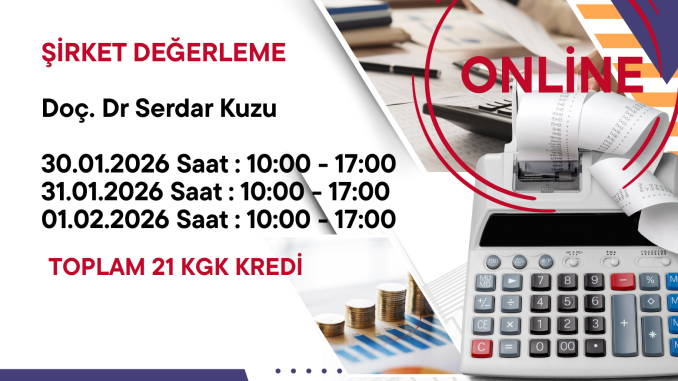 | 31.Oca.26 | 10:00 – 17:00 | ŞİRKET DEĞERLEME | 7 | DOÇ. DR. SERDAR KUZU | UZAKTAN |