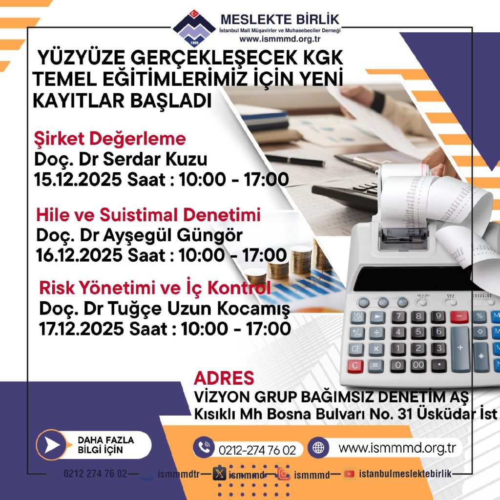 | 15.Ara.25 | 10:00 -17:00 | ŞİRKET DEĞERLEME | 7 | DOÇ. DR. SERDAR KUZU | Üsküdar – İST |